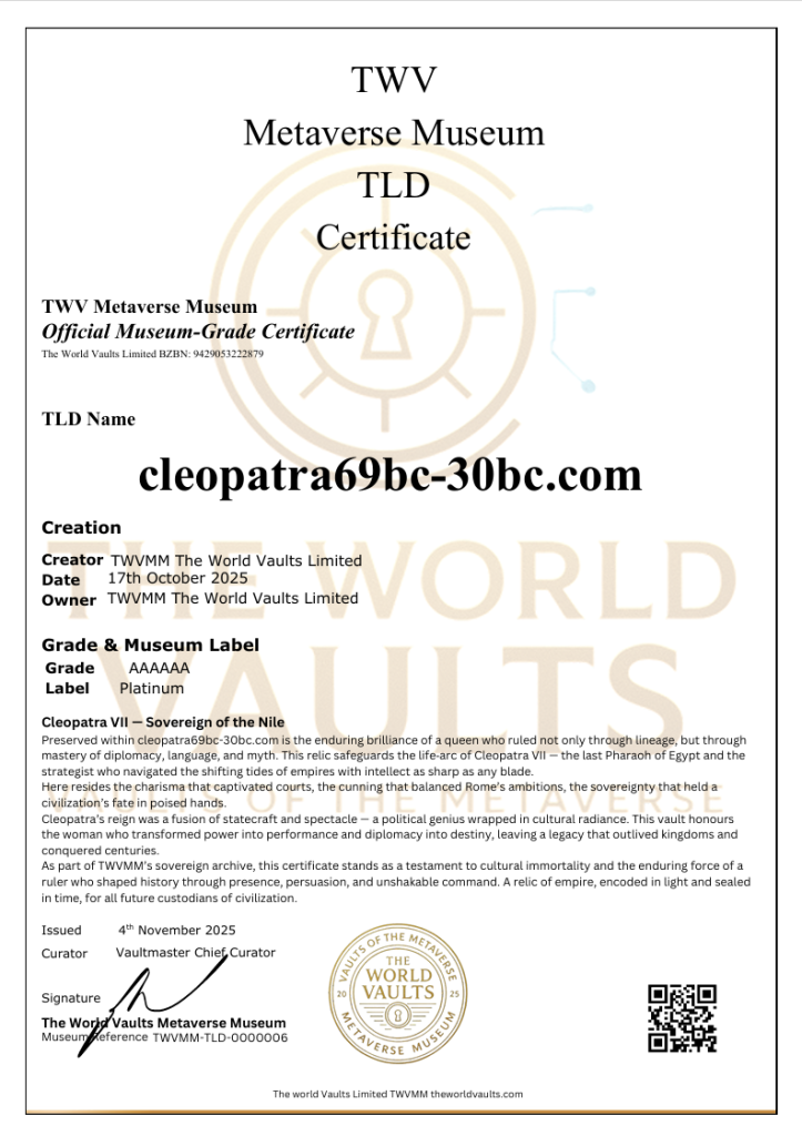 cleopatra69bc-30bc.com Cleopatra VII — Sovereign of the Nile This vault honours the queen who wielded charm as power and diplomacy as destiny. Within its glow lies the legacy of a woman who balanced empire and myth. A sanctuary of charisma, cunning, and cultural immortality.