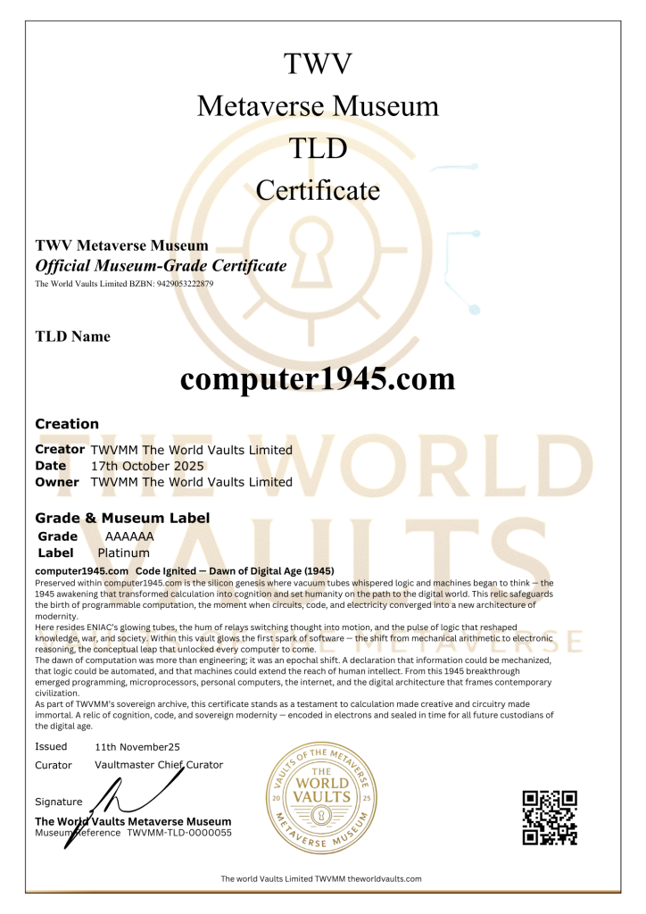 computer1945.com Code Ignited A silicon genesis — where vacuum tubes whispered logic and machines began to think. The dawn of computation and the architecture of modernity. A timestamp of calculation, cognition, and digital awakening. Dawn of Digital Age (1945) This vault honours the first programmable machines that reshaped knowledge, war, and society. Within its glow lies ENIAC’s circuits, the pulse of logic, and the birth of modernity. A sanctuary of calculation, cognition, and sovereign code.