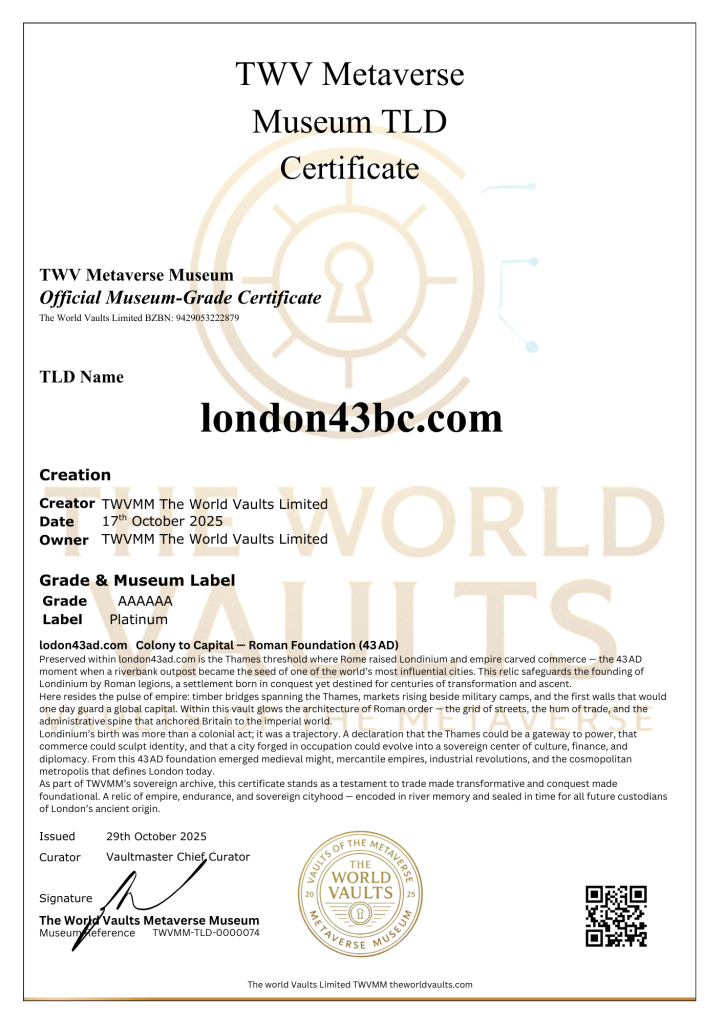 london43ad.com Colony to Capital A Thames threshold — where Rome raised Londinium and empire carved commerce. The pulse of a city born in conquest. A timestamp of trade, transformation, and timeless ascent. Roman Foundation (43 AD) This vault honours the founding of Londinium by Roman legions. Within its glow lies the Thames, the walls, and the pulse of empire. A sanctuary of trade, transformation, and sovereign city.