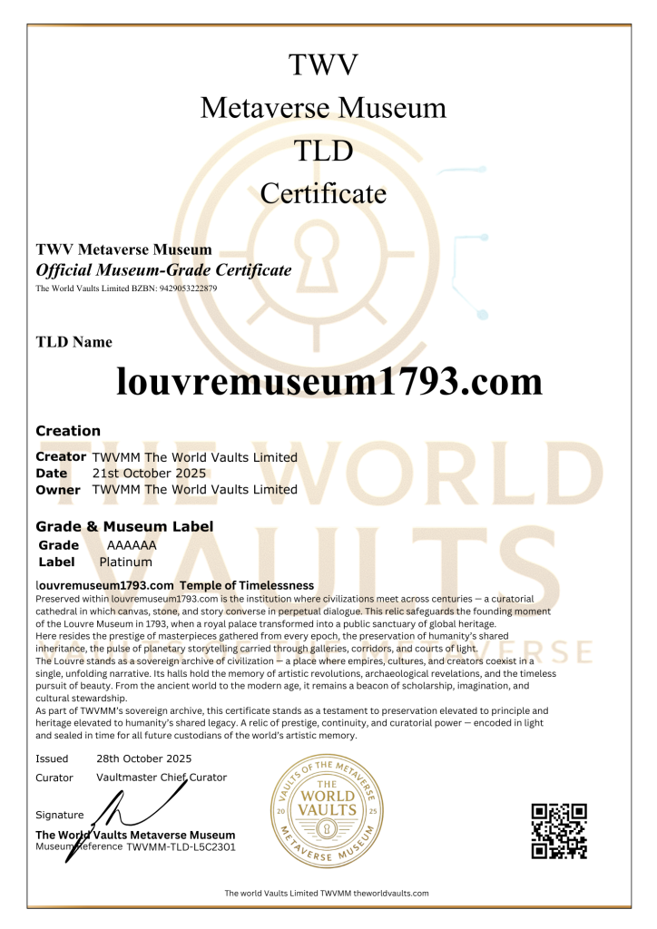 louvremuseum1793.com Revolution Reborn (1793) This vault honours the transformation of a royal palace into the world’s most iconic museum. Within its glow lies the democratization of art, the treasures of civilizations, and the pulse of cultural memory. A sanctuary of preservation, prestige, and sovereign curation. Temple of Timelessness A curatorial cathedral — where civilizations converse in canvas and stone. The pulse of global heritage preserved in Paris. A timestamp of preservation, prestige, and planetary storytelling.