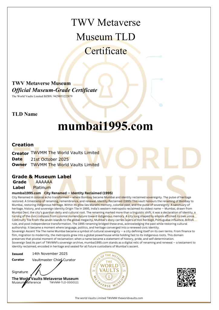 mumbai1995.com City Renamed A colonial echo transformed — where Bombay became Mumbai and identity reclaimed sovereignty. The pulse of heritage restored. A timestamp of renaming, remembrance, and renewal. Identity Reclaimed (1995) This vault honours the renaming of Bombay to Mumbai, restoring indigenous heritage. Within its glow lies Marathi memory, colonial past, and the pulse of sovereignty. A sanctuary of heritage, history, and sovereign identity.