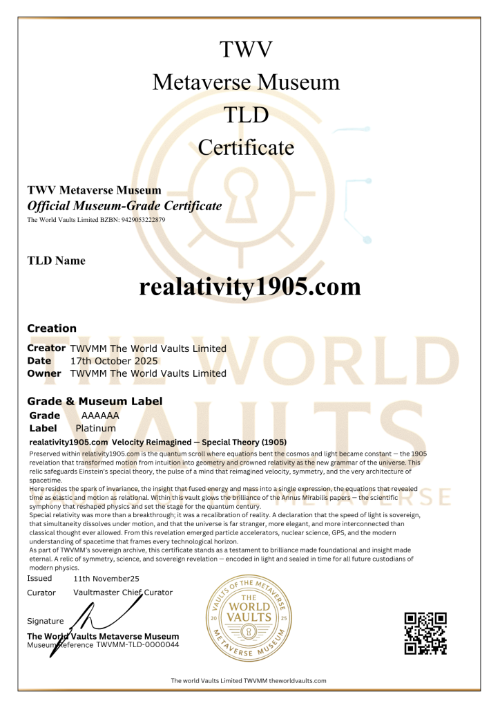 relativity1905.com Velocity Reimagined A quantum scroll — where equations bent the cosmos and light became constant. The pulse of Einstein’s special relativity. A timestamp of brilliance, breakthrough, and scientific symphony. Special Theory (1905) This vault honours the revelation that motion and time are relative, bound by the speed of light. Within its glow lies the miracle year, the papers of genius, and the pulse of modern physics. A sanctuary of symmetry, science, and sovereign revelation.