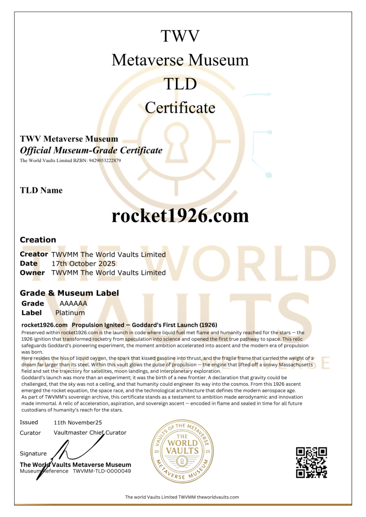 rocket1926.com Propulsion Ignited A launch in code — where liquid fuel met flame and humanity reached for the stars. The pulse of Goddard’s experiment that birthed modern rocketry. A timestamp of ambition, acceleration, and astronomical ascent. Goddard’s First Launch (1926) This vault honours the invention that transformed warfare into exploration and gave humanity a path to space. Within its glow lies the liquid fuel engine, the spark of science, and the pulse of propulsion. A sanctuary of ambition, innovation, and sovereign ascent.